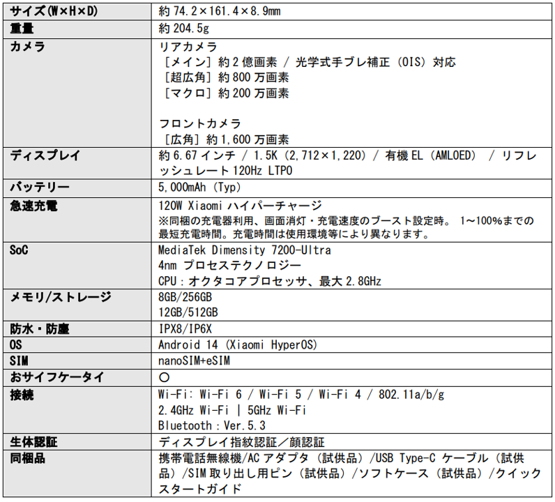 ■Redmi Note 13 Pro+ 5Gのスペック概要