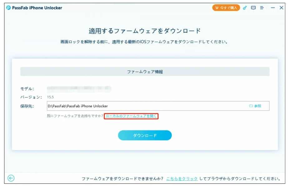 Step4: 「ローカルファームウェアを開く」をクリックして、ダウンロードしたIPSWファイルを選択します。