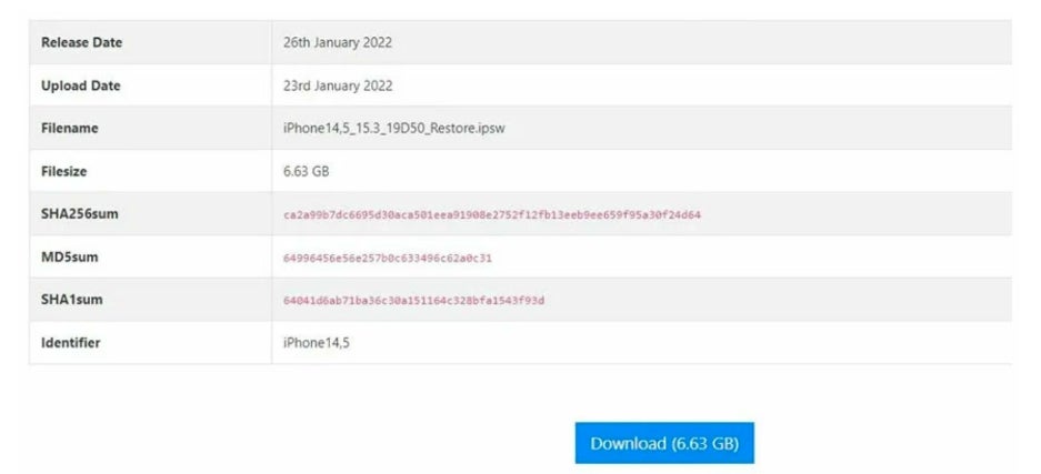 Step3: https://ipsw.me/からIPSWファイルをパソコンにダウンロードします。