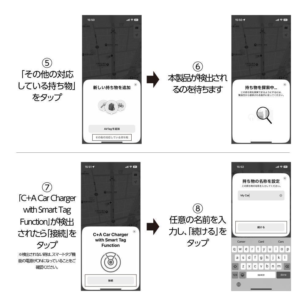 スマートタグ機能付カーチャージャー C+A |