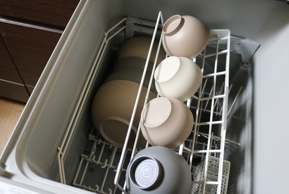 樹脂でできた器は、食器洗浄乾燥機に対応していることで、後片付けの手間も軽減。