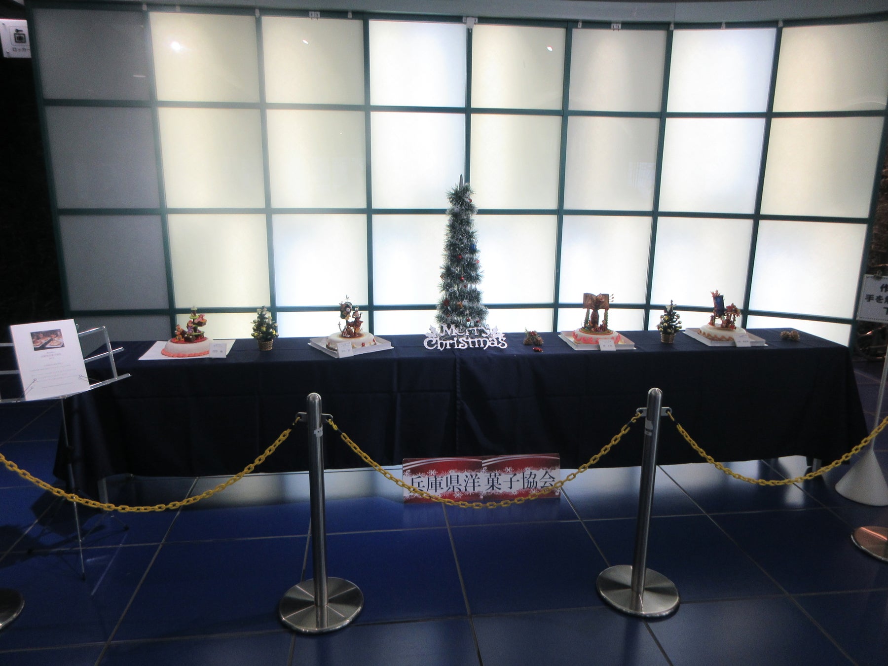 「舞子海上プロムナード」1階エントランスホールにて、兵庫県洋菓子協会主催のクリスマスケーキコンテスト入賞者4名の作品を展示しています。