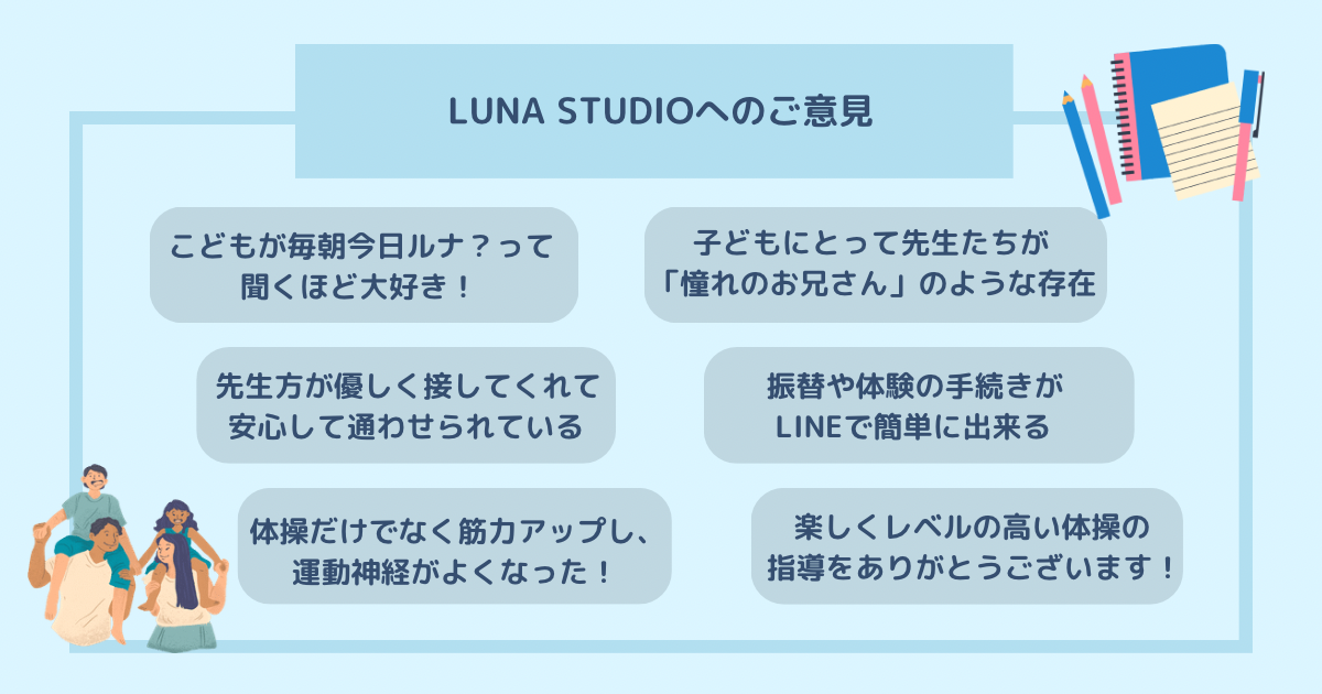 LUNA STUDIOによせられたご意見を抜粋させていただきました。