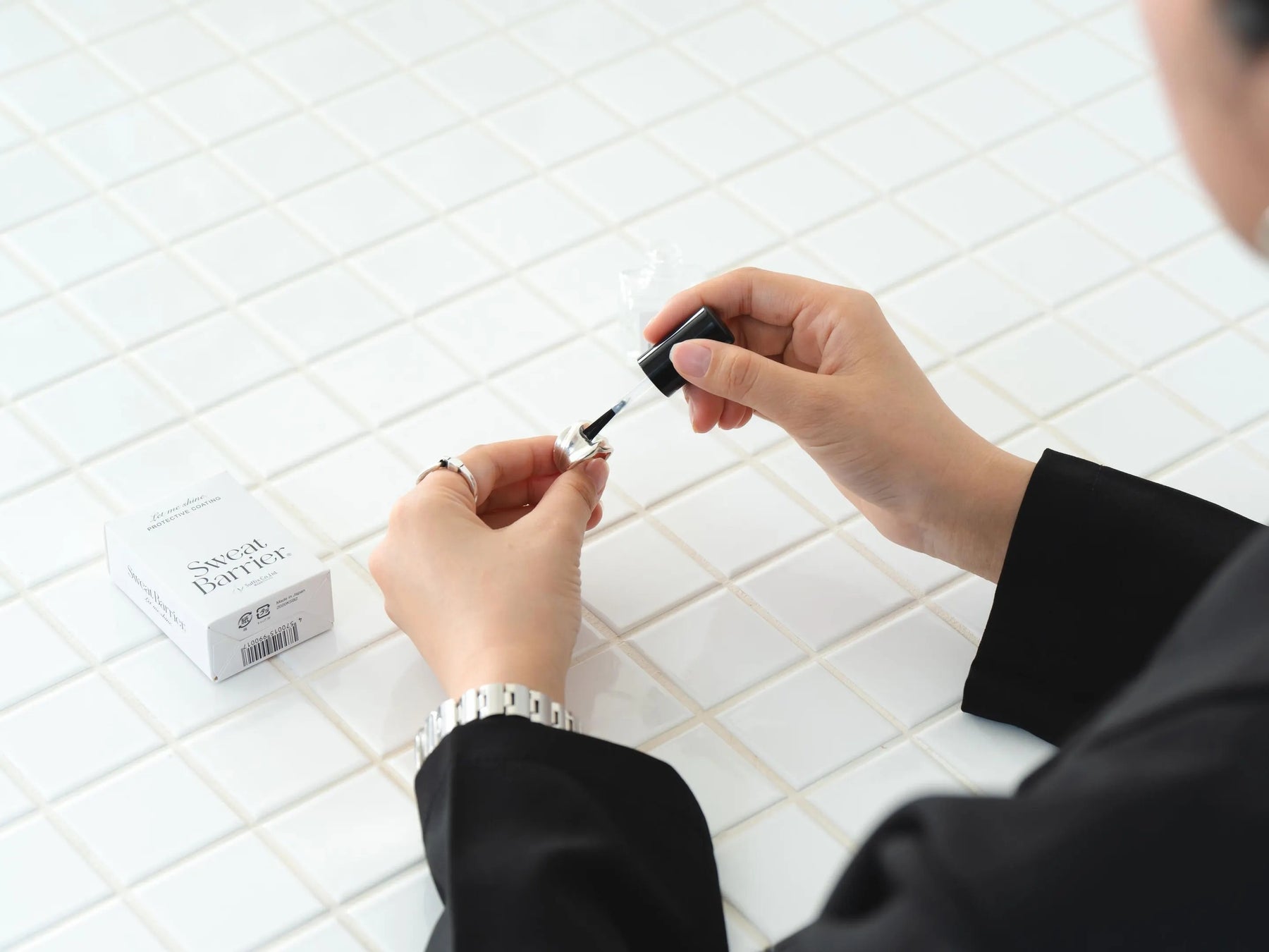 Sweat Barrier®は、そんな「好きなのに使えない」という声に向き合って生まれたアクセサリー用コーティング剤です。