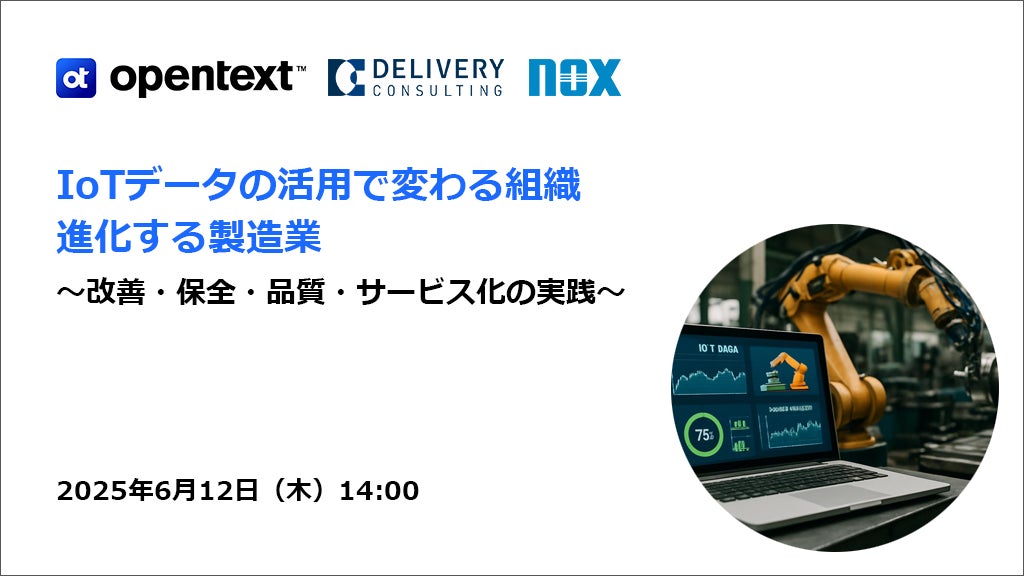 データリテラシーの向上を通じてデータドリブンカンパニーへの変革を支援する株式会社デリバリーコンサルティング(本社:東京都港区、取締役CEO:内藤 秀治郎)は、OpenText(NASDAQ:OTEX、TSX:OTEX、日本法人:東京都千代田区、代表取締役社長:三浦 デニース)、ノックス株式会社(本社:東京都目黒区、代表取締役:加藤 理)と共催でWEBセミナーを開催いたします。