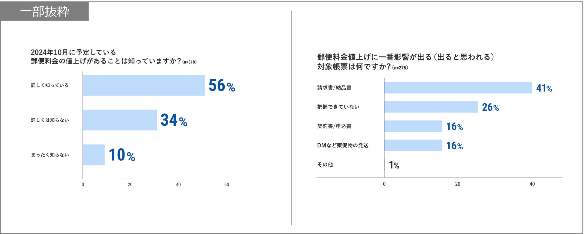 株式会社インボイス(代表取締役:加茂 正巳 本社:東京都千代田区)は、バックオフィス担当者300人に対して、2024年10月1日から値上げした【郵便料金】に関する「企業の郵便料金改定の認知や把握」の実態調査を行ったレポートを公開しましたのでお知らせいたします。