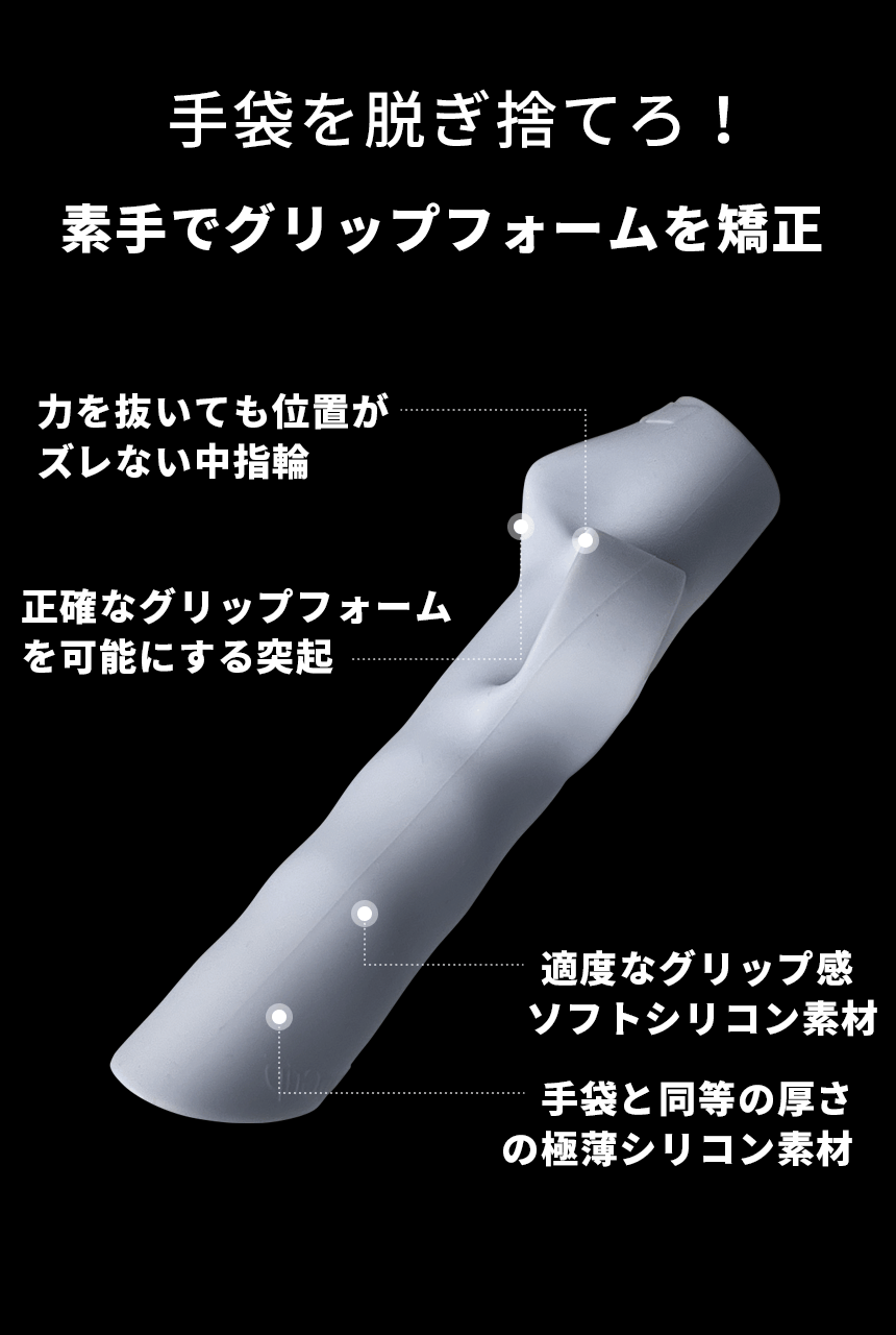 タイトル:グローブは要らない!密着するシリコンで正しいグリップが身につくグリップサポーター