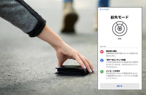 「MOYAGOA」とスマホのBluetooth距離が離れており、「探す」アプリで製品に接続できない場合、「紛失モード」をオンにし、連絡先番号などを製品に登録することができます。落し物を他人が拾った場合は、登録情報に基づいて連絡が可能です。