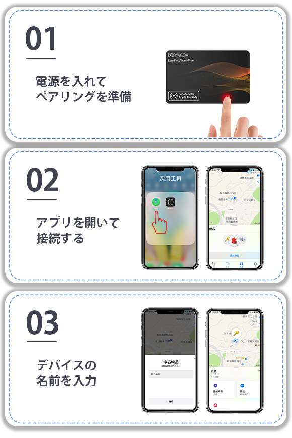 重要なものが見つからなくても、「MOYAGOA」があれば、忘れ物や紛失物を素早く見つけることができるのでご安心ください。