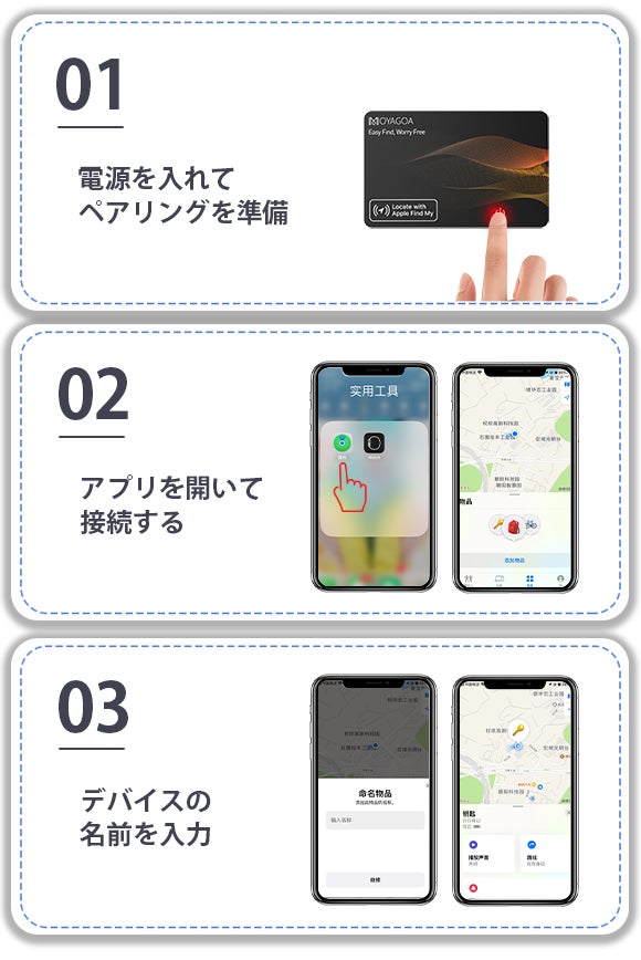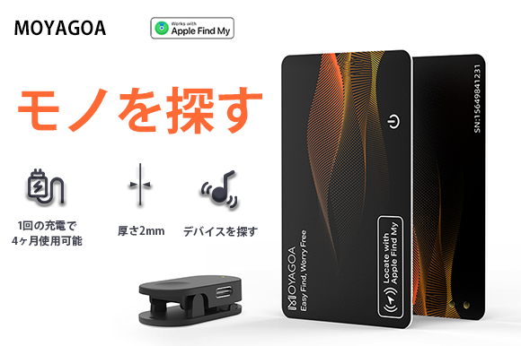 「探す」でどこでも簡単追跡!カード型紛失防止タグ「MOYAGOA」