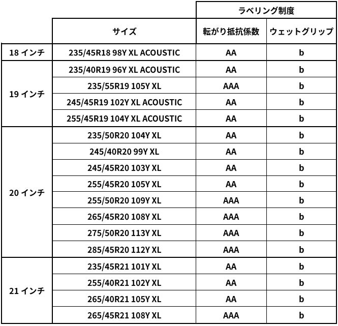 これにより、スポーツタイヤでありながら、JATMA転がり抵抗ラベリングがAAAまたはAA*の高い環境性能を達成しました。