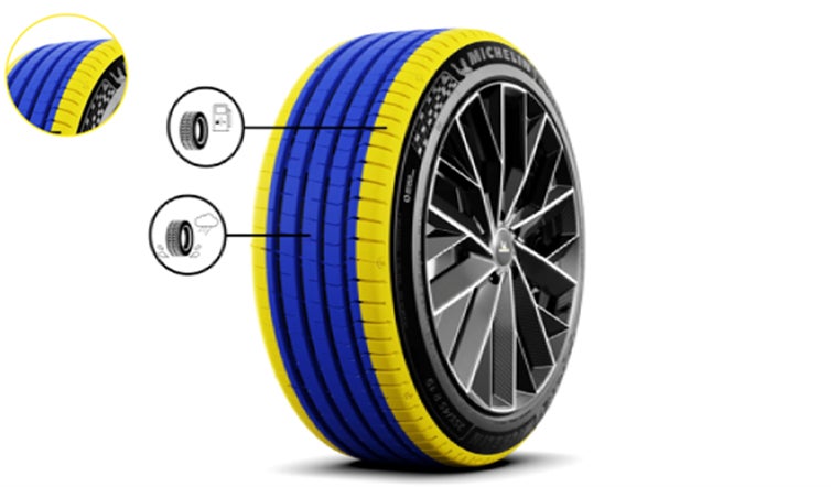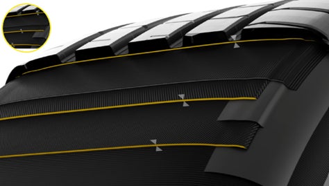 ショルダー部には、燃費の低減やバッテリーレンジを伸ばすためにエネルギー効率の良いゴムを採用し、タイヤの転がり抵抗をさらに低減。