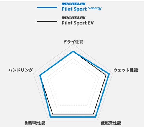 「Pilot Sport EV」の後継モデルとして開発された「MICHELIN Pilot Sport 5 energy」は、スポーツ走行に求められる卓越したハンドリング性能に加え、低燃費性能、耐摩耗性、そして、ウェットグリップ性能のさらなる向上を実現した、環境性能にも優れたハイグリップスポーツタイヤです。