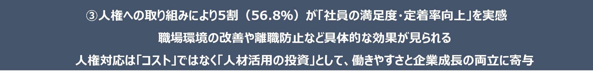 ③人権への取り組みにより5割(56.8%)が「社員の満足度・定着率向上」を実感