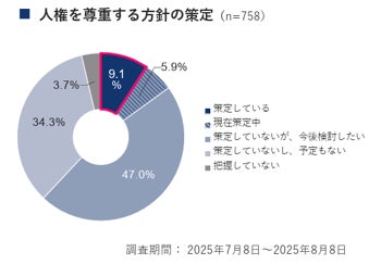 〈2025年度第1回 中小企業経営実態調査〉人権方針を策定している中小企業は9.1%のみ重要性を認識している企業は8割超。人権意識と取り組み状況に大きなギャップ