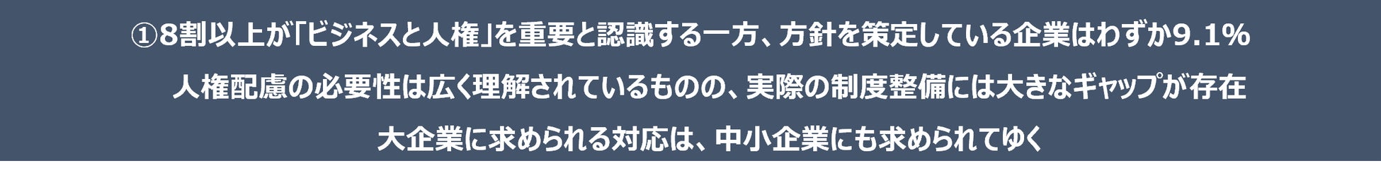①8割以上が「ビジネスと人権」を重要と認識する一方、方針を策定している企業はわずか9.1%
