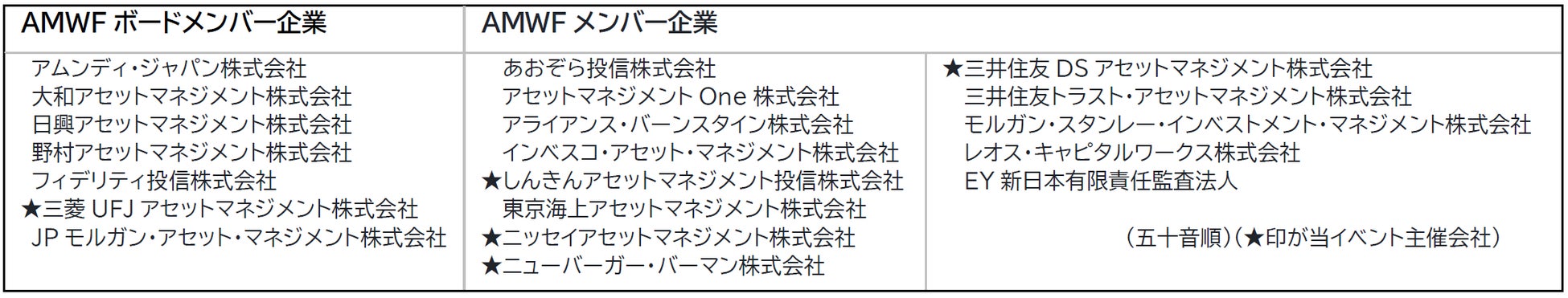 三菱UFJアセットマネジメント株式会社 AMWF事務局 amwf-muam@am.mufg.jp |