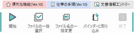 「お仕事バー」は、DocuWorks Desk上の画面下のタブ上に、「FAX送信状をDW(DocuWorks) に変換」や「送信済みスタンプ捺印」など、業務の流れにあわせて利用する作業アイコンを配置できる機能です。「Docuworks 10」では、「開始」と「終了」ボタンを追加し、「開始」ボタンを押すことで、「お仕事バー」に配置した複数の作業アイコンを連続実行することが可能になりました。図5これにより、日常業務をさらに効率的に進めることができます。