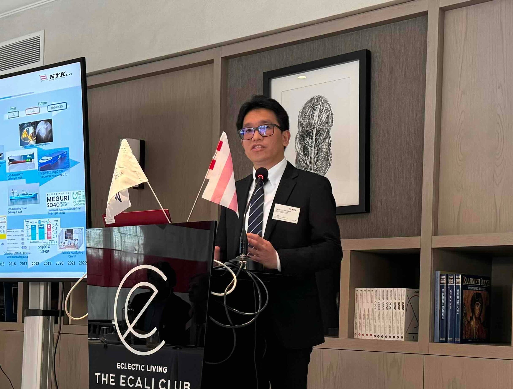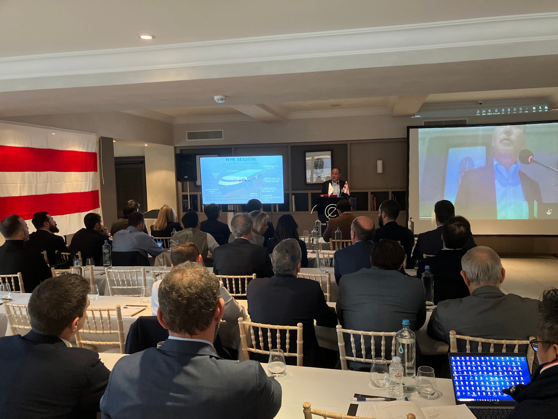本会議は、ギリシャ船主等との間で、過去の事故やトラブルに関する事例とそれらの対策、当社グループの安全運航に関する取り組み、海運業界全体で行われている自然環境への負荷軽減への取り組みについての情報共有を目的に開催されました。また当日は、当社から、当社グループ独自の安全基準であるNAV9000に基づく安全推進活動(注1)や陸上から船舶の機関状態を監視することができるRemote Diagnostic Center(RDC、注2)を紹介したほか、日本海事協会(ClassNK)から次世代舶用燃料について、ノルウェーの船級協会のDet Norske Veritas(DNV)か海運業界の脱炭素化に向けた取り組みついての説明がありました。