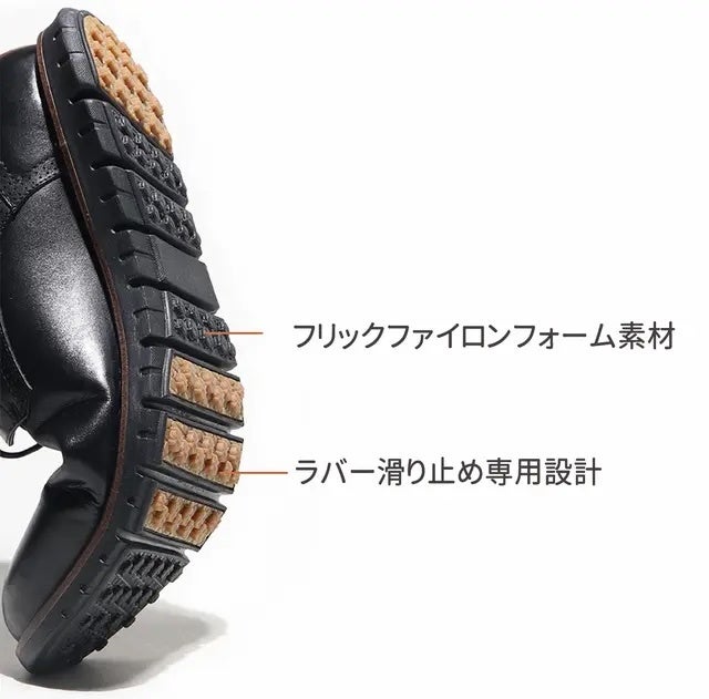 長時間の通勤で革靴を履くと足が疲れますよね。このシューズのレザーソールの重量は、自社従来のレザーソールに比べて軽くて快適です!より軽いファイロンフォーム素材は、長時間着用しても足が疲れにくいです。