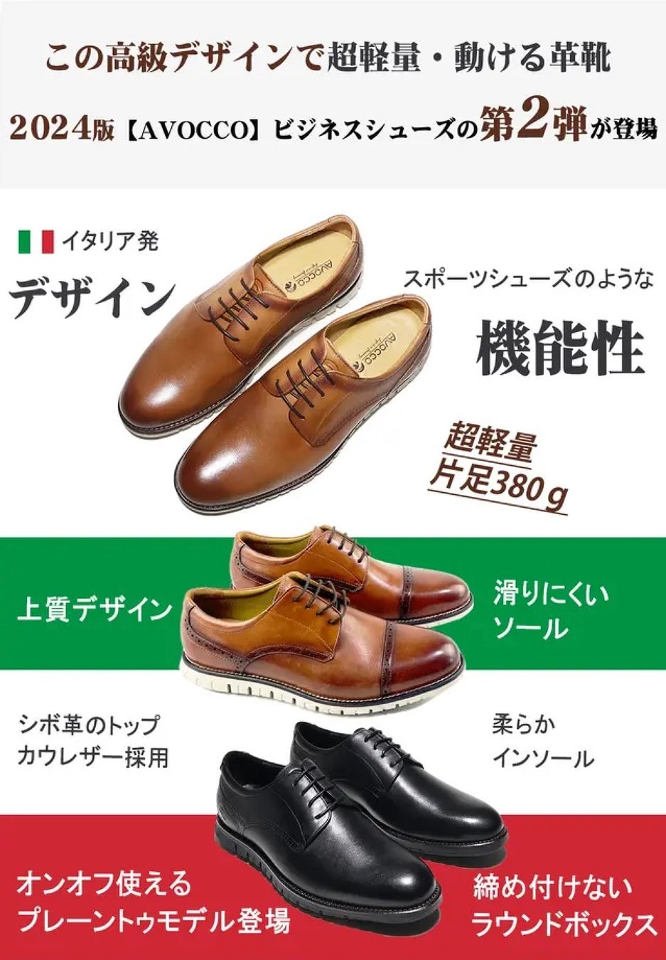 それが、「イタリアの旅行靴メーカーが本気で作った動ける革靴【AVOCCO】ビジネスシューズ」です。第1弾にてご好評をいたき、この度新デザインをMakuakeにて先行発売することになりました。