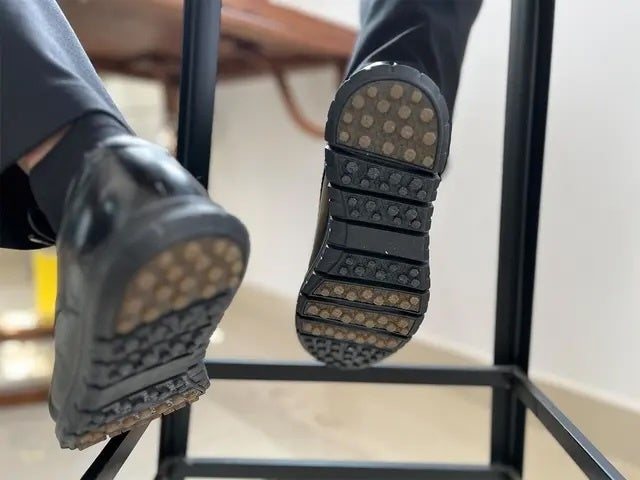 ①見た目は本革のビジネスシューズ、履いたら軽くて柔らかいスポーツシューズのような高機能シューズ