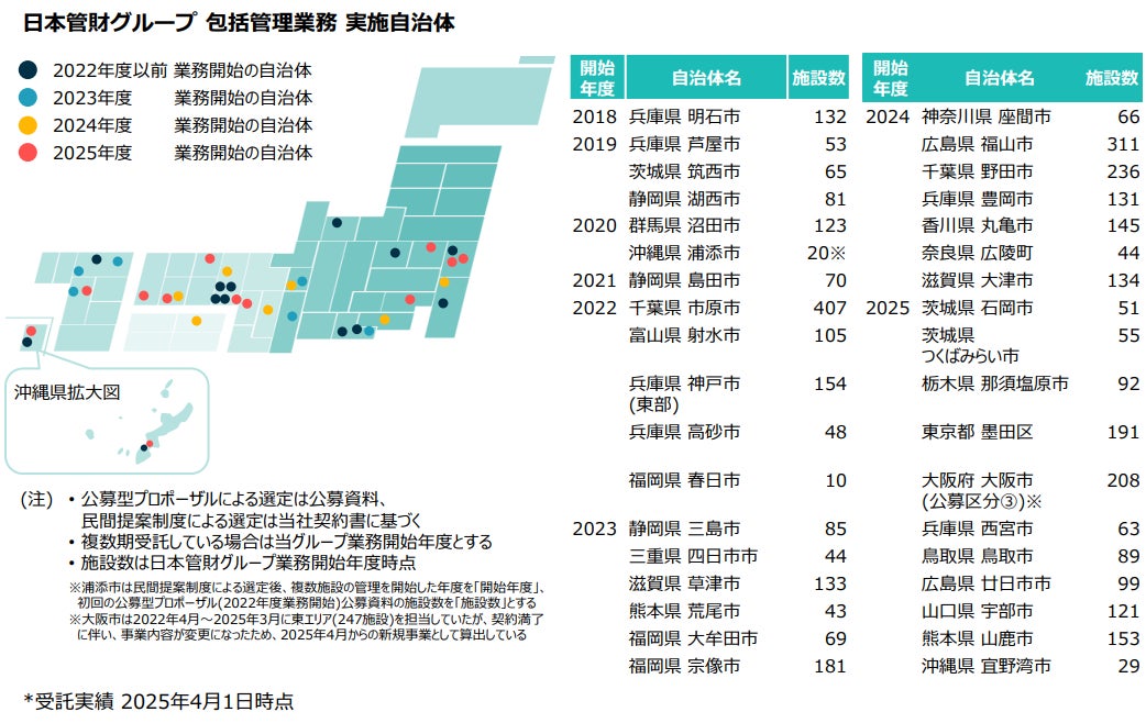日本管財は今後、舞鶴市と詳細協議を行い、2026年3月上旬に契約締結、2026年4月から業務開始を予定しています。履行期間、対象施設、対象業務は下表のとおりです。