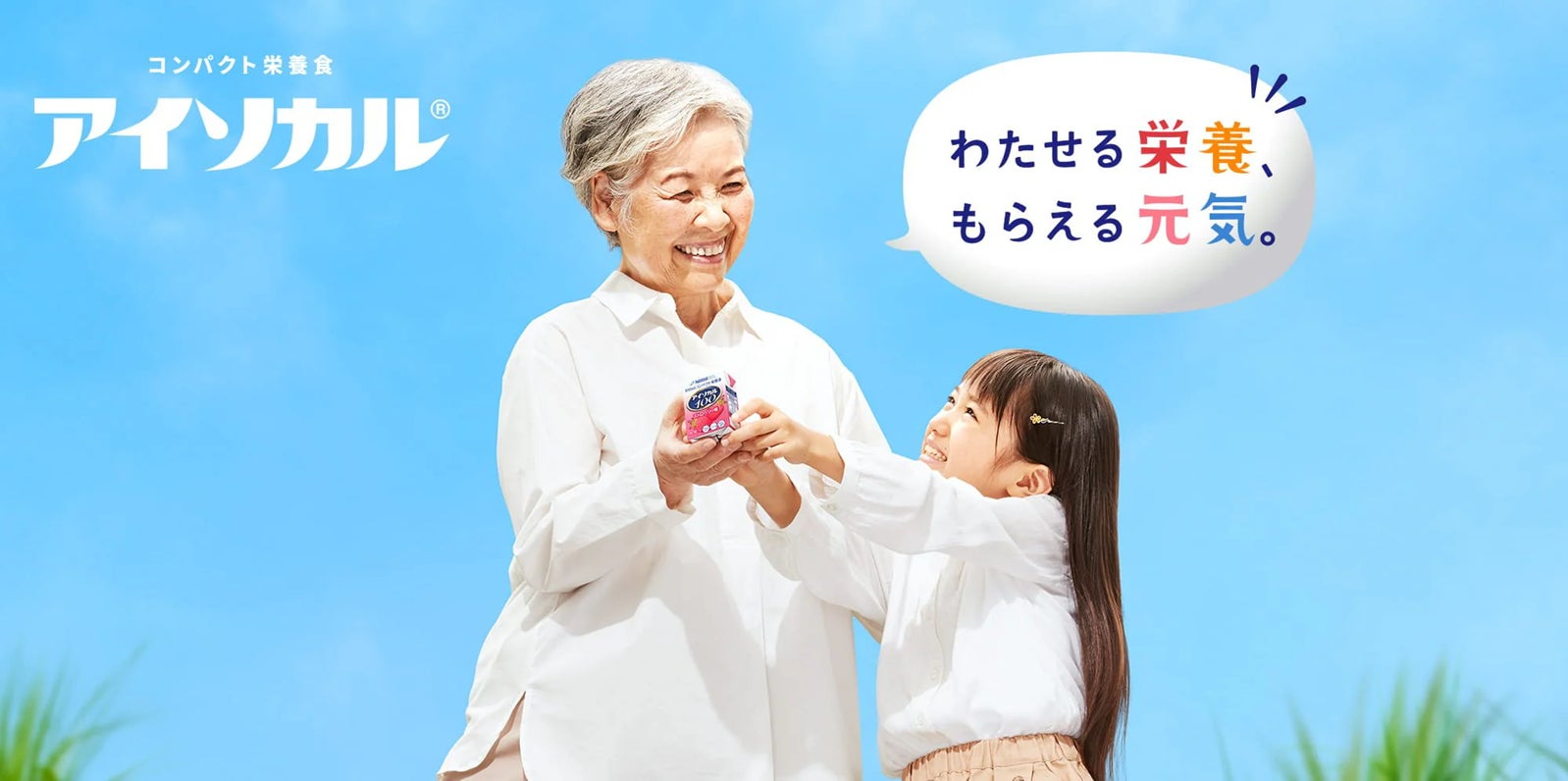 食べやすい・飲みやすいこと。おいしいこと。少量で栄養をきちんと摂れること。そして、前向きになれる元気を届けること。それらを大切に、「おいしそうに飲んでくれた」、「つぎはどの味にしようかな」。そんな、介護する人・される人の明るい声を増やしたいという想いから、これからも、“心に届く栄養”「アイソカル®」で在宅ケアをサポートします。