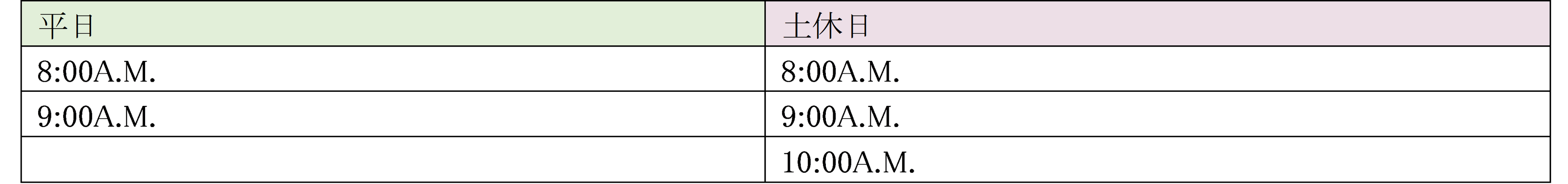 ※バスの運行スケジュールは予告なしに変更になる可能性があります。