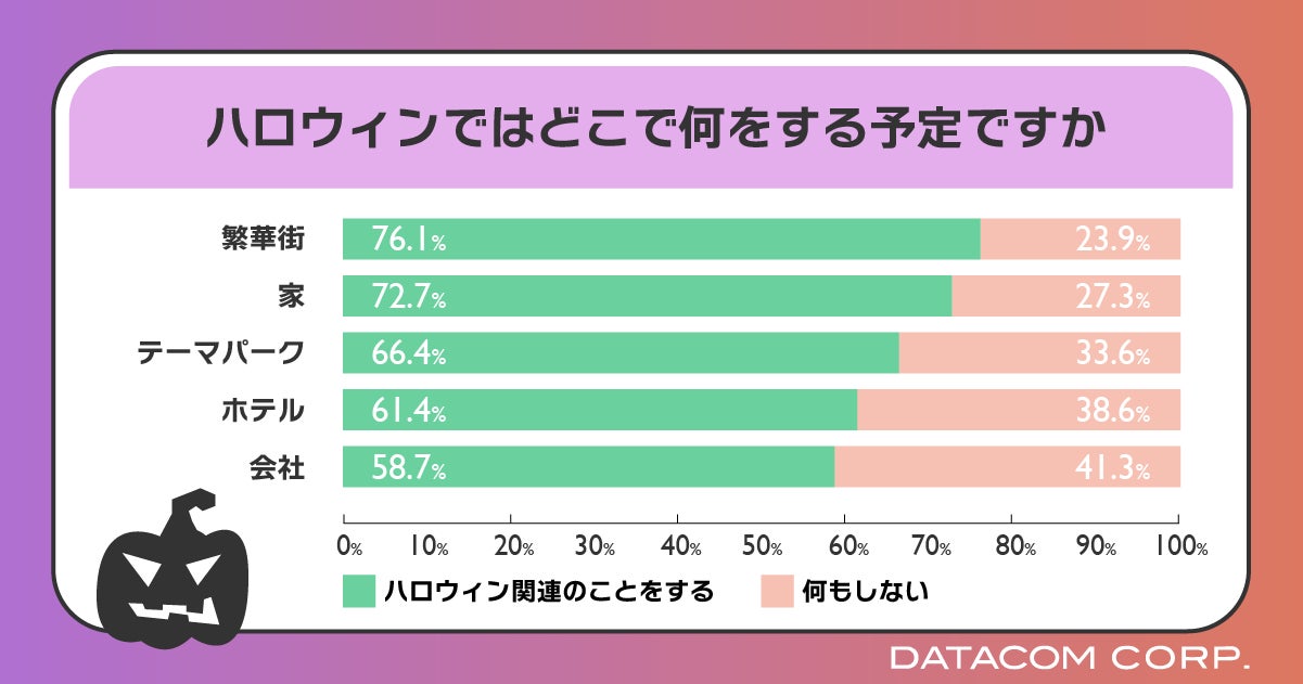 小売業界に特化した商品・顧客分析ソリューションを始めとする、パッケージシステムを開発・提供しているデータコム株式会社(本社:宮城県仙台市、代表取締役:小野寺修一)は、首都圏在住の20、30代に今年のハロウィンの動向に関するアンケート調査を実施しました。