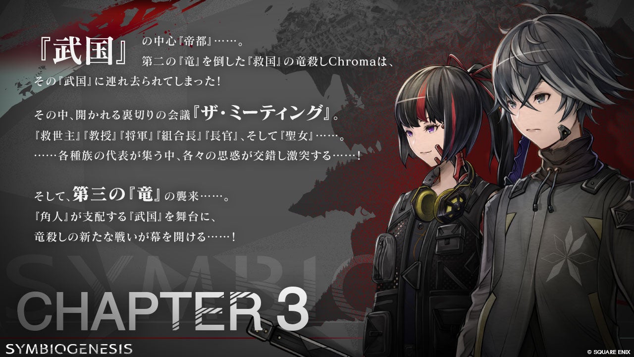 株式会社スクウェア・エニックス(本社:東京都新宿区、代表取締役社長:桐生 隆司、以下当社)は、Discordで仲間とともに謎を解く新感覚ファンタジーアドベンチャー『SYMBIOGENESIS』の第三章「武国」のキービジュアルと新情報を公開します。