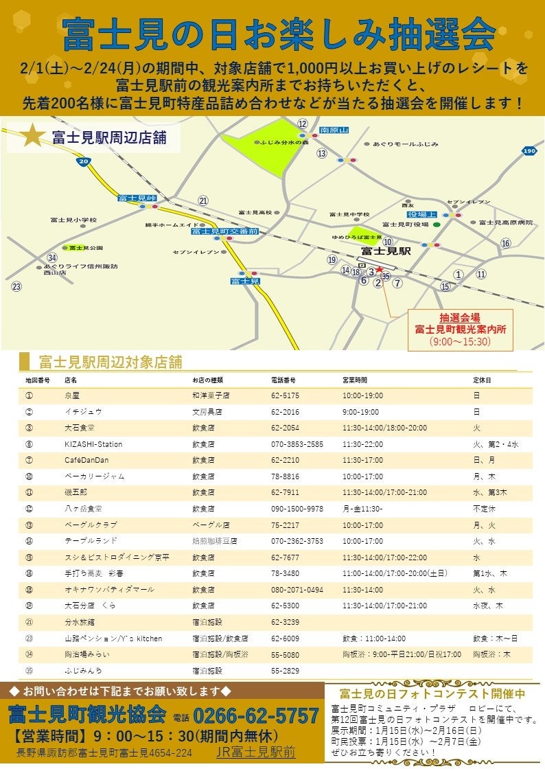 ・2月23日(日)〈富士見の日限定〉でお得なサービスを提供します。