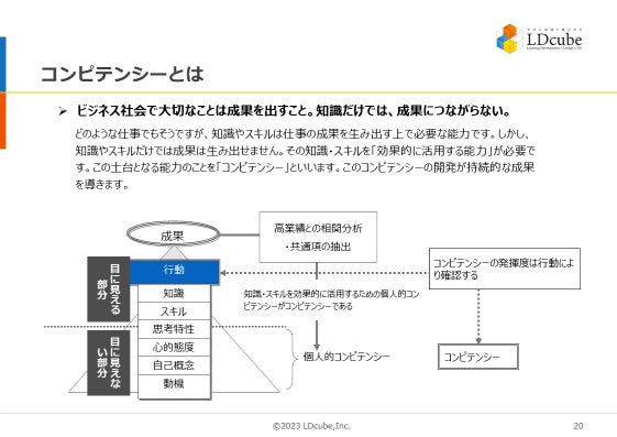 1.コンピテンシー(能力)開発とは 2.能力開発が進むタイミング 3.年代別の調査データ 4.能力開発における段階別ポイント(当社新井の実体験含む) 5.計画的な能力開発に必要な要素 6.支援事例 |