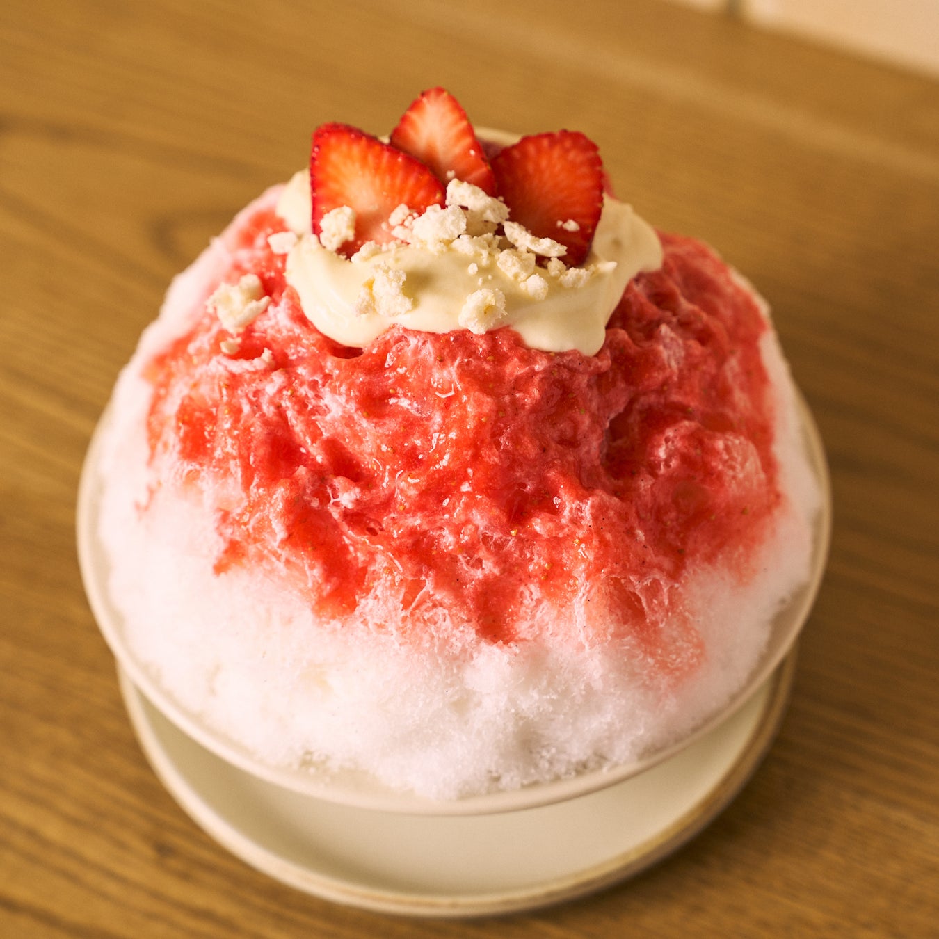 イングランドの伝統的なデザート「イートンメス」をイメージした、甘酸っぱいいちごとメレンゲのかき氷。