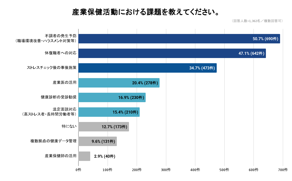【1,362名に調査】産業保健の課題、約半数が「不調者の発生予防」と回答