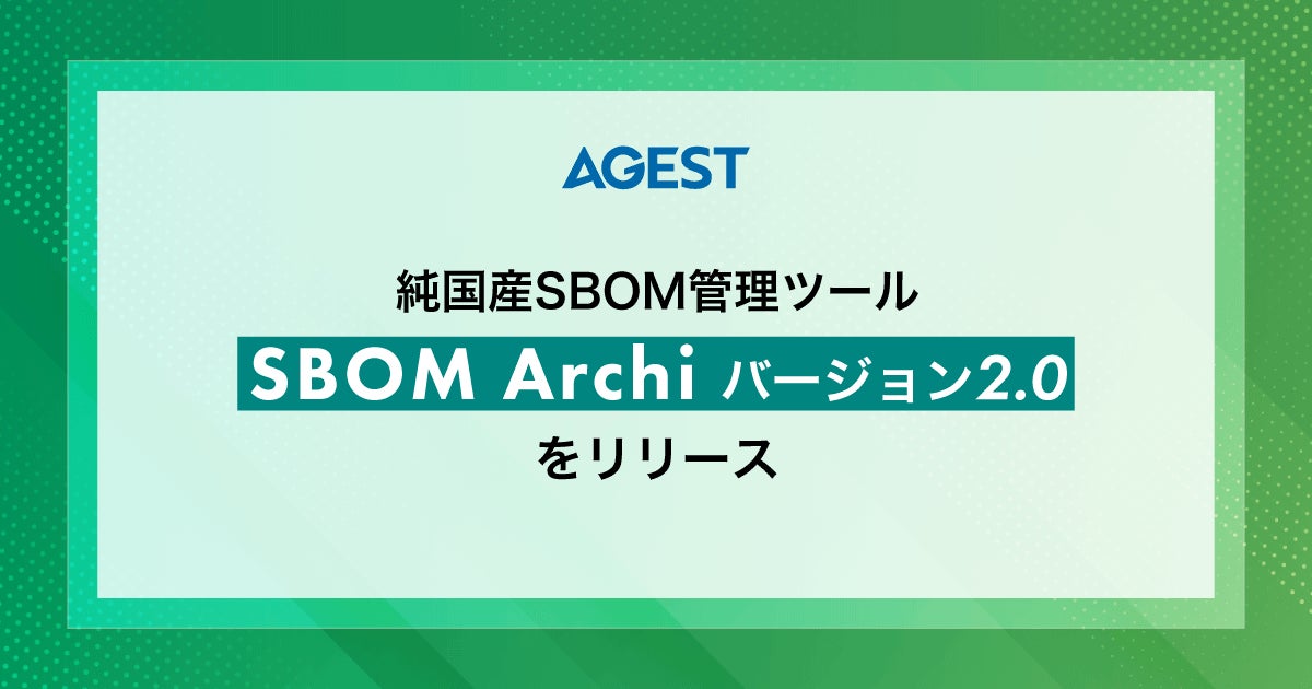 先端品質テクノロジーを活用してソフトウェアの品質・安全性向上を支援する株式会社AGEST(本社: 東京都文京区、代表取締役 社長 執行役員 CEO: 二宮 康真、以下、「AGEST」)は、4月1日(水)に純国産のSBOM管理ツール「SBOM Archi(エスボム アーキ)」の最新バージョン2.0をリリースしたことをお知らせいたします。
