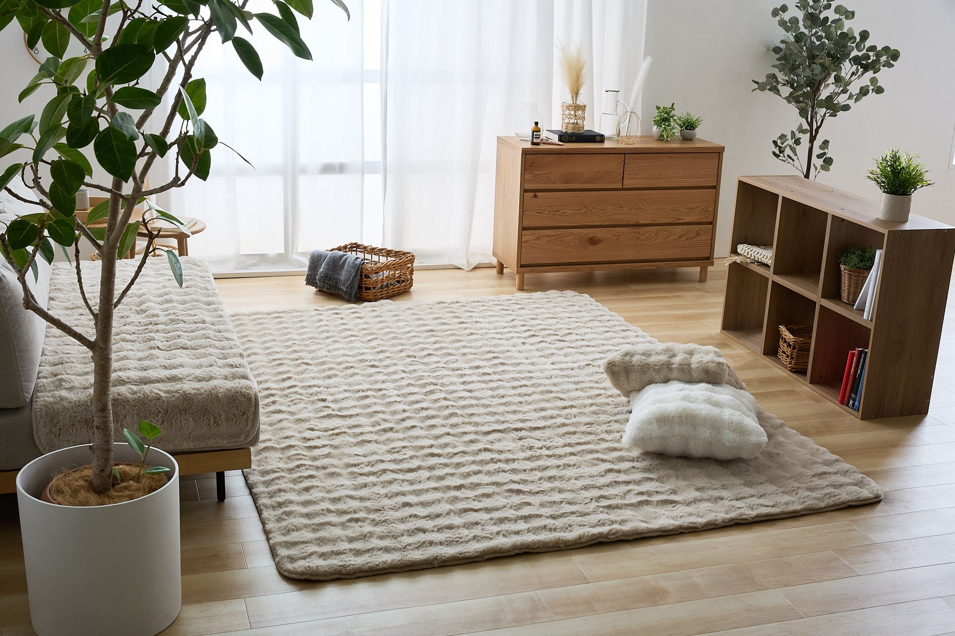 本シリーズでは、近年人気の高いラビットファーのような柔らかなもこもこ生地を採用。韓国風インテリアにもマッチする、かわいらしく上品なデザインで、冬のお部屋をあたたかくおしゃれに演出します。表生地には高密度でしっかりとした厚みと弾力をもつ素材を使用。