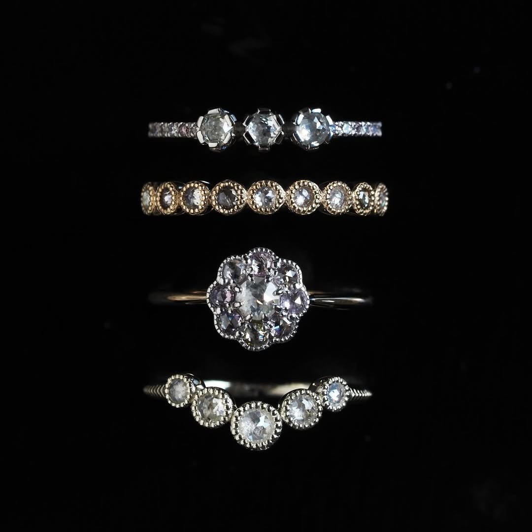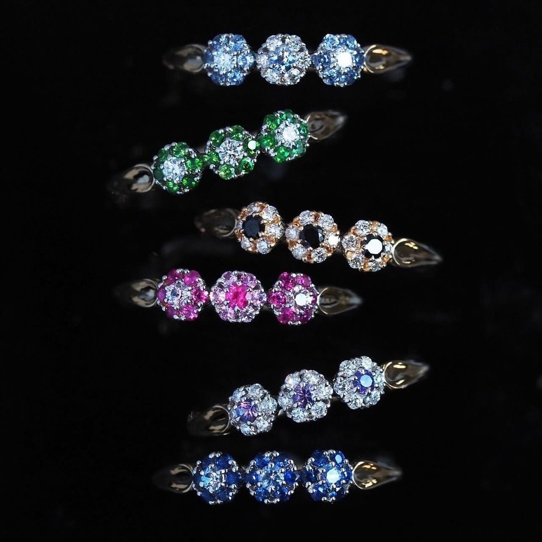 今回はこの"ファインスノウホワイトダイヤモンド"を使用したジュエリーを12月3日(火)までの限定で12本のみご用意することができました。デザインは『レヴリ』『ミルシェノン』『ラフレーズ』の3種類。それぞれ、ファインスノウホワイトダイヤモンドのみを使用したものや、ファンシーナチュラルカラーダイヤモンド、サファイア、ピンクダイヤモンドを組み合わせたものなど、同じ組み合わせは一つとしてございません。