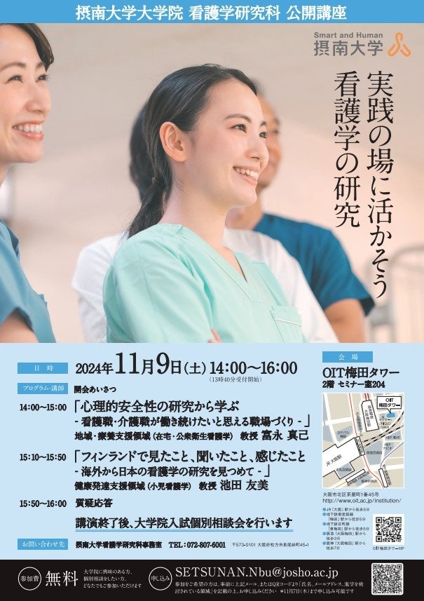 【摂南大学】看護学の研究を臨床現場へ生かす11月9日 摂南大学大学院 看護学研究科 公開講座を開催