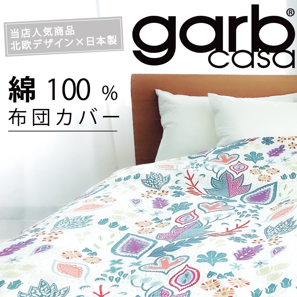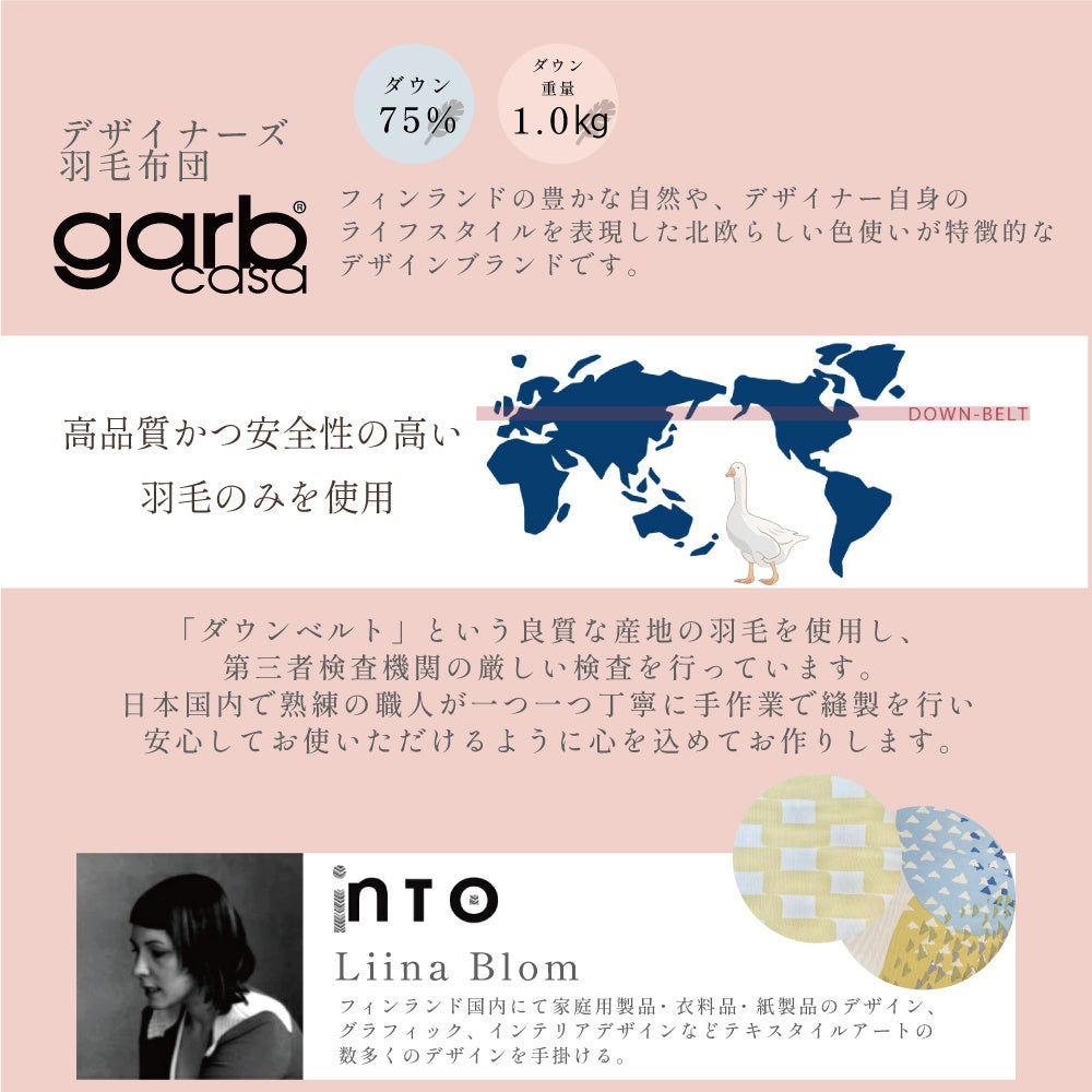 羽毛掛けふとんでもご紹介しました、garb casaデザインのふとんカバーが1枚付きます。