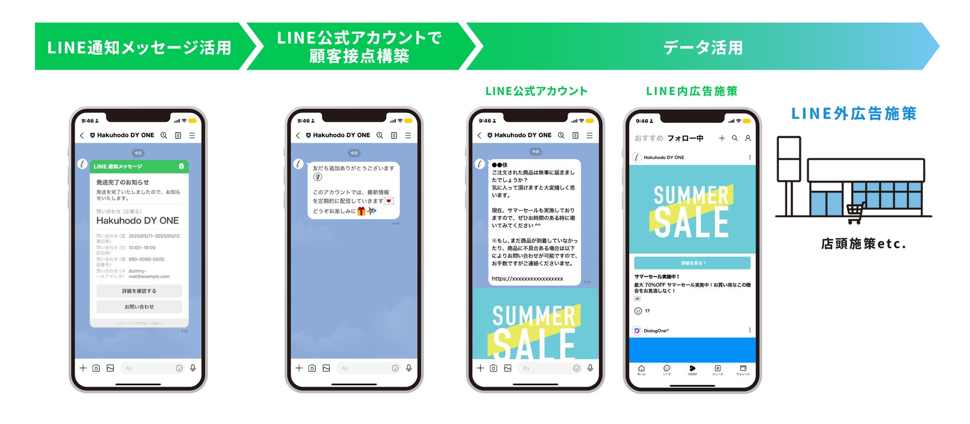 株式会社Hakuhodo DY ONE(本社:東京都港区、代表取締役会長:田中雄三 代表取締役社長:小坂洋人、以下 Hakuhodo DY ONE)は、当社が開発・提供する「DialogOne®︎(ダイアログワン)」*1において、LINEヤフー株式会社(以下 LINEヤフー社)の「LINE通知メッセージ」*2のリニューアルに対応した機能のアップデートを行います。これにより、企業の「LINE通知メッセージ」を起点としたユーザーとのコミュニケーションを最適化し、より確実で効果的な情報発信および長期的な関係構築を支援いたします。