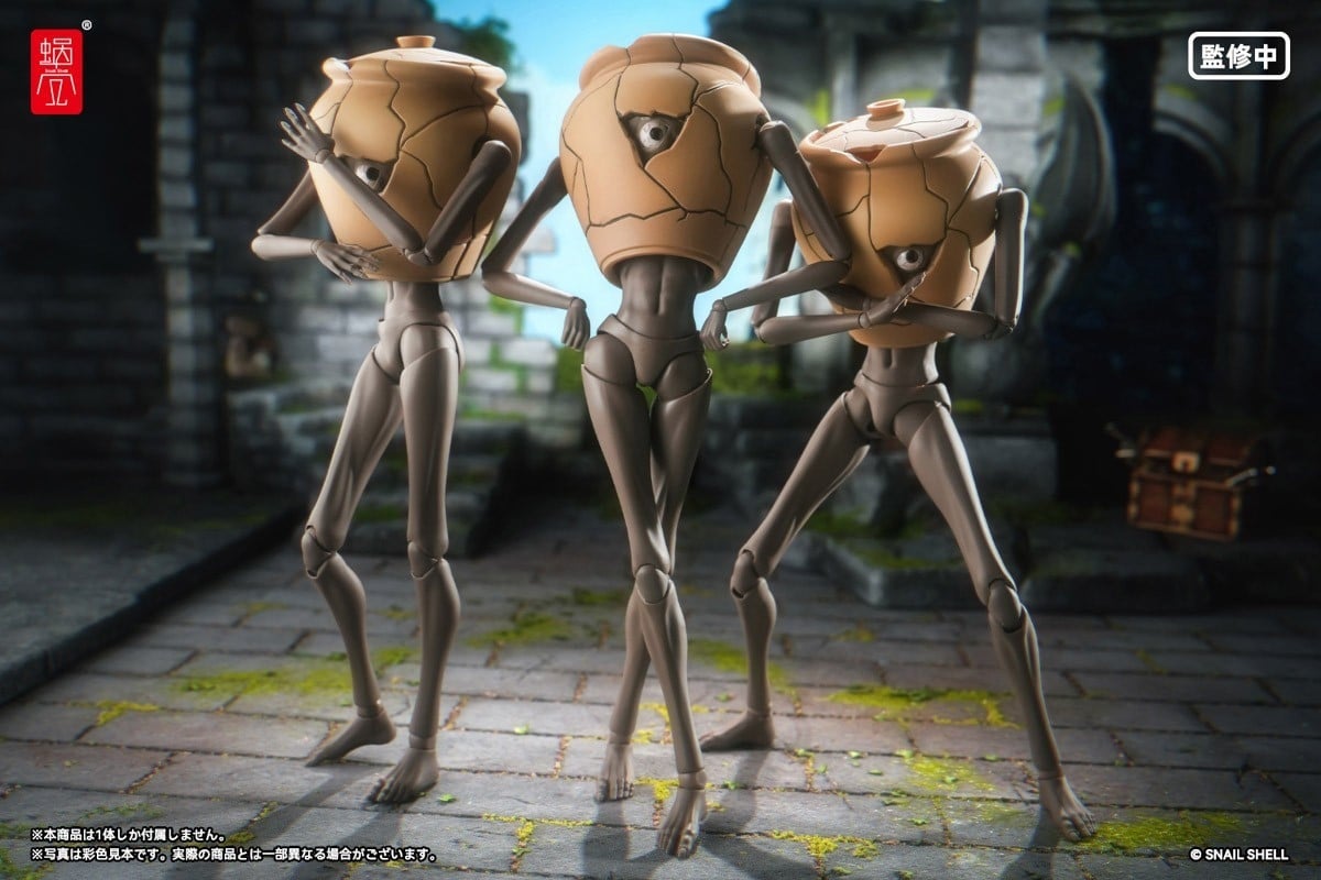 また、壺の表面にはつや消しトップコートとスミ入れが施されており、リアルな質感を再現しています。本体の手足や胴体の関節部には、スネイルシェルの汎用ジョイントサイズを採用しており、他製品のパーツと組み替えることが可能です。