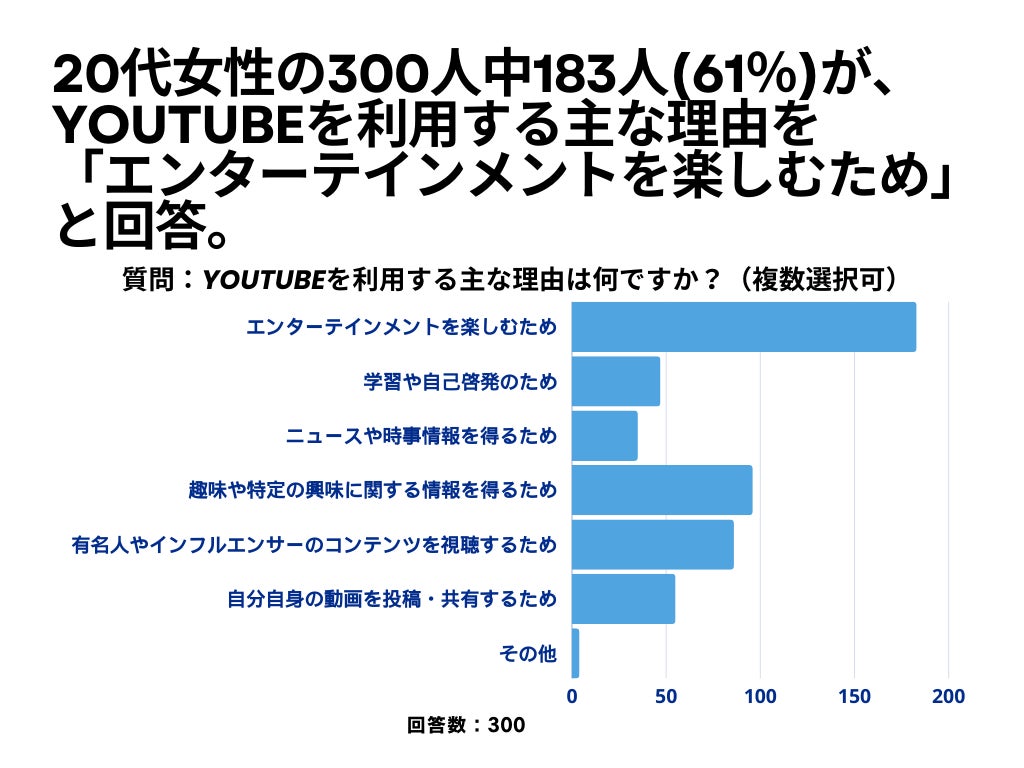 20代女性の300人中204人(68%)が、YouTubeについて「興味あり」と回答【YouTubeに関するアンケート】