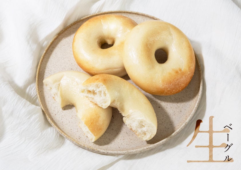 風味豊かな国産小麦と米粉の生地に生クリームを加え、独自の多加水製法により“しっとりもちもち”に仕上げた生ベーグルです。