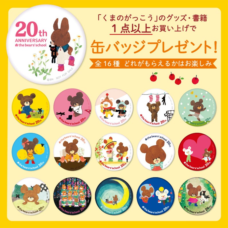 くまのがっこう誕生20周年を記念し、3/5(土)~4/3(日)まで、全国のお店で「くまのがっこう 20周年フェア」を開催。期間中、対象の店舗でお買い物をして頂いた方に、オリジナルノベルティをプレゼントいたします。