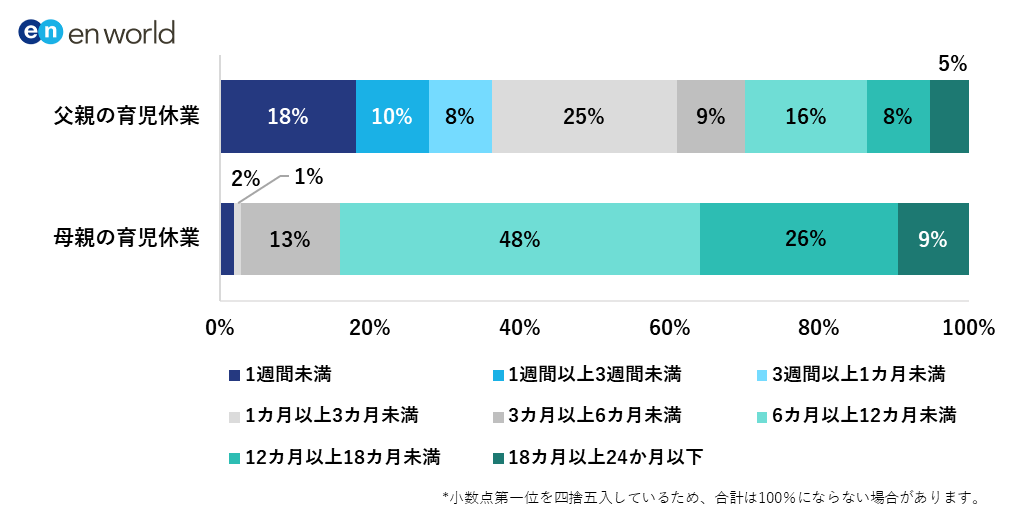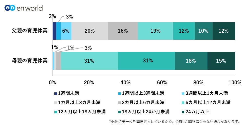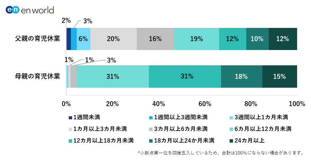 - 育休期間、理想と現実に大きな差。男女共に「2年以上」希望が1割以上