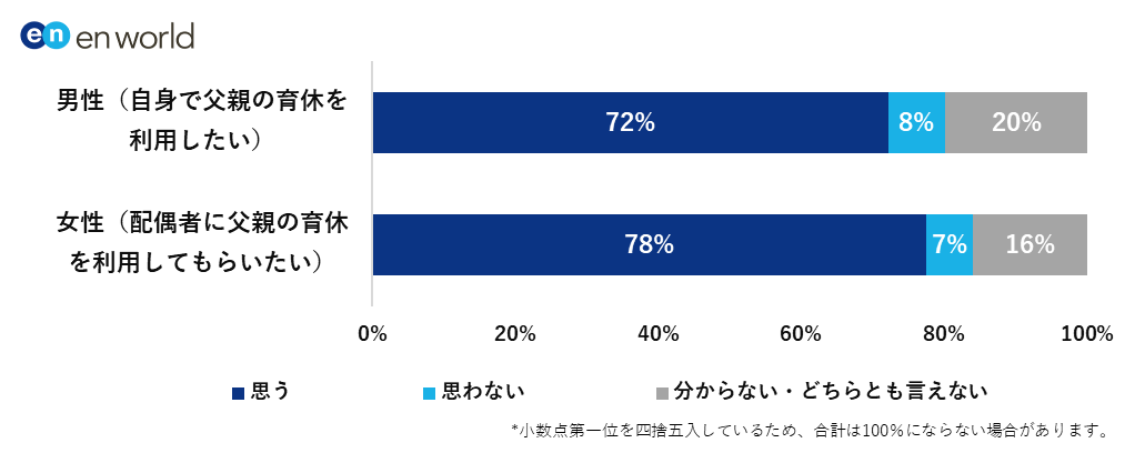 - 「父親の育休」7割以上が利用希望。リモートワークの活用も育休の代替案に