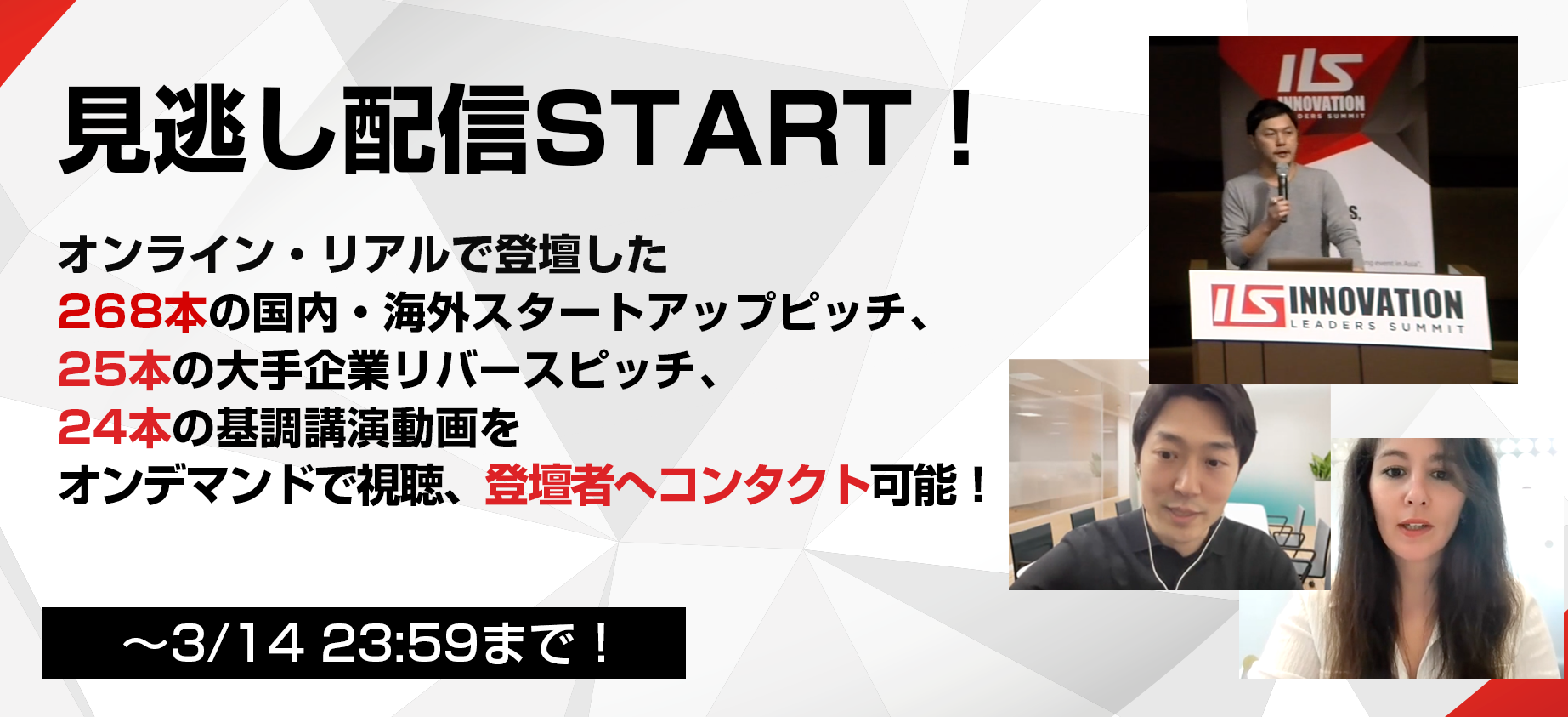 アジア最大のオープンイノベーションの祭典「第9回イノベーションリーダーズサミット(ILS2022)」では先週末に閉幕したILS2022のオンラインイベント(全て)とリアルイベント(一部)の見逃し配信を開始しました。配信期間は3月14日までです。