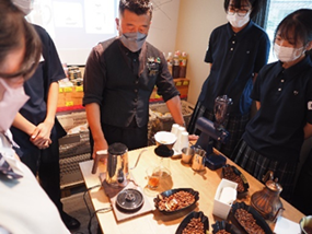 | 高校入学時よりビジネスを実地で学びたいと考え、昨年度は東京都が主催する「東京プランニング・ラボ」に参加して、アパレルメーカー・オンワード樫山様から半年間ビジネスについて学びながら、ビジネスプランを提案し、最優秀賞を獲得しました。 今年度は、地元国立市で実際に商品を開発したいという思いから、nonowa国立に出店している函館 美鈴珈琲様にご協力いただき、オリジナルコーヒーを1年かけて開発しました。さらに、購入特典として北海道松前高校の書道部デザインのコースターをプレゼントします。 |