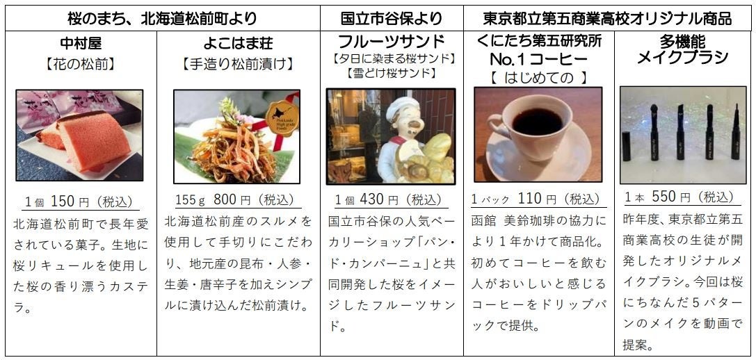 内 容:桜のまちである東京都国立市と北海道松前町をつなぐ、東京都立第五商業高等学校の生徒が厳選した逸品や、地域企業と開発したオリジナル商品の販売